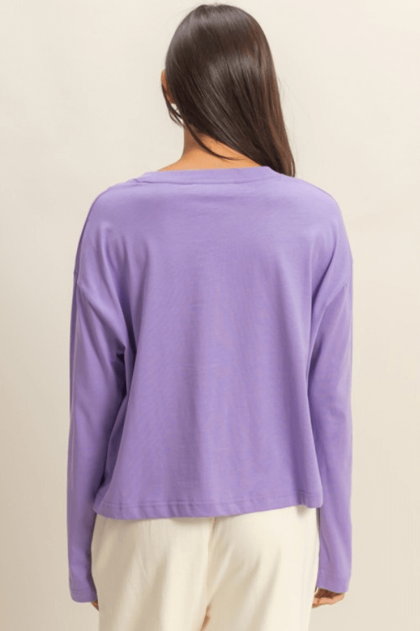 Slip into comfort with this relaxed wide-fit tee in a soft lilac purple hue. Perfect for layering or wearing solo, the generous cut offers easy movement and an effortlessly cool vibe. The long sleeves provide versatile coverage for any season, while the calming purple tone works with everything in your wardrobe.
