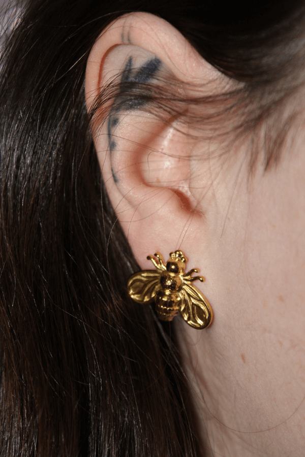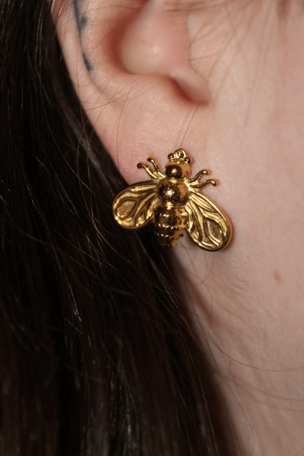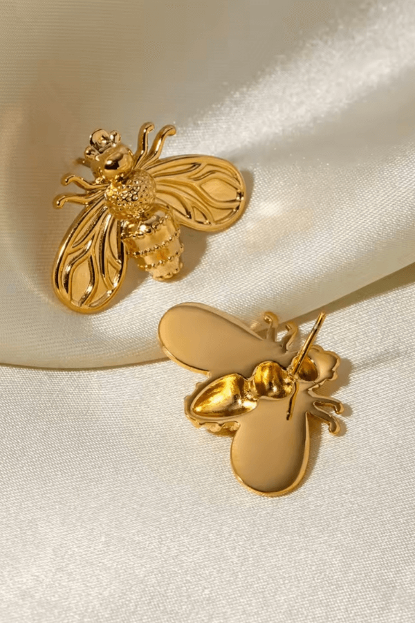 Bee Stainless Steel 18K Gold Waterproof Stud Earrings