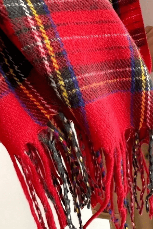 Get into the Christmas spirit with this charming red plaid shawl scarf. Incredibly soft and toasty warm, it features a festive plaid weave and decorative fringe edges. Make this scarf your new holiday essential for staying snug and stylish!